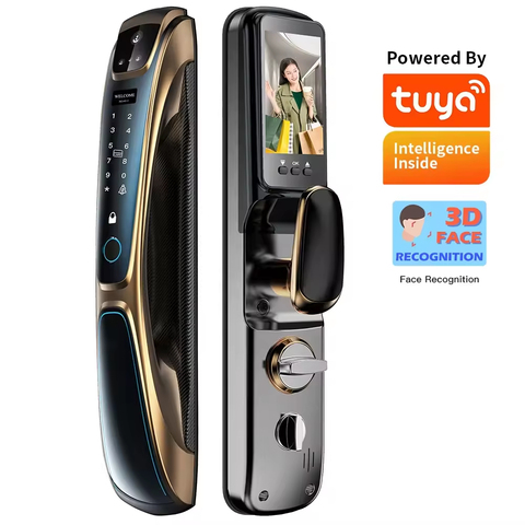 Totalmente automático Tuya Smart Lock 3D Reconocimiento de huellas dactilares Sistema de intercomunicación de madera Contraseña de hogar Nube Fabricado Palm Vein